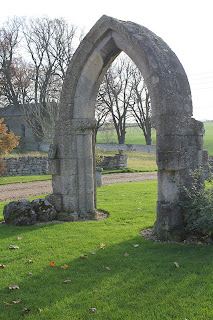 The arch, on private land is all that remains of a church from the 12th, 13th or 14th century.